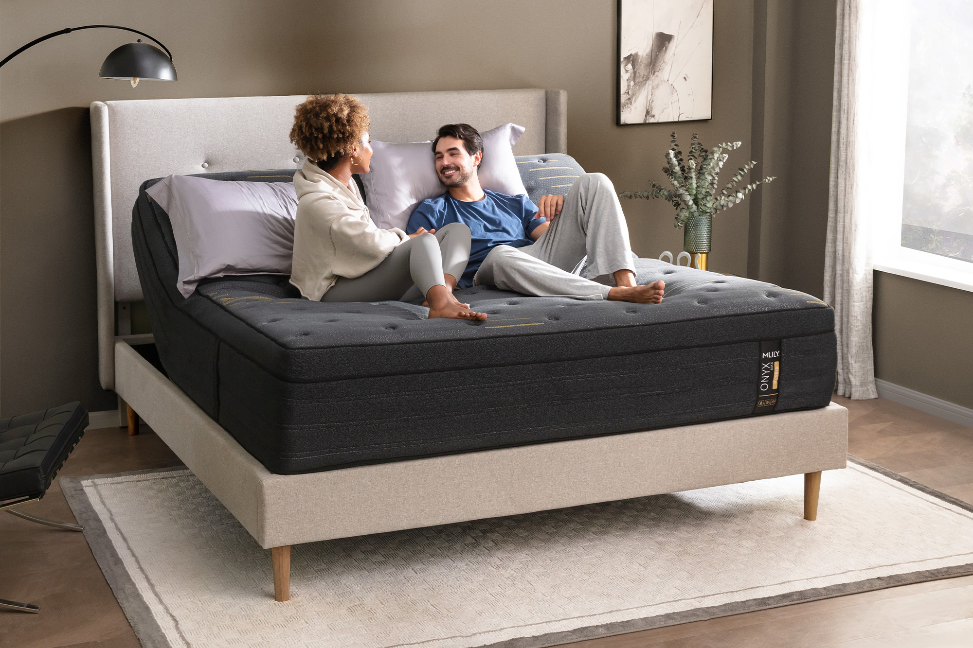 The Onyx Max is designed to provide a luxuriously plush sleeping surface while also being supportive and comfortable. The quilted Cooling Knit Cover and the two different gel-infused foams regulate temperature and improve air circulation. These foams also work in tandem with the latex-like AdaptiFoamâ„¢ to actively adapt to each and every individual.